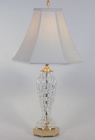 A perfect size for bedside, this cut crystal lamp in the Evanwood pattern, is accented with solid brass.