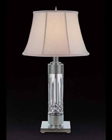 The Waterford Lismore Silver table lamp is 34.5" tall, features Waterford's Lismore crystal pattern and has a silver luna finish. On the Lismore Silver table lamp, the white frosted bengaline shade measures 13x17x12", the base is 8" wide and 4.5" high and the three-way socket takes up to a 100 watt bulb. Please call us if you have any questions about any Waterford lamps or if you would like to order a Lismore Silver Table Lamp by phone.